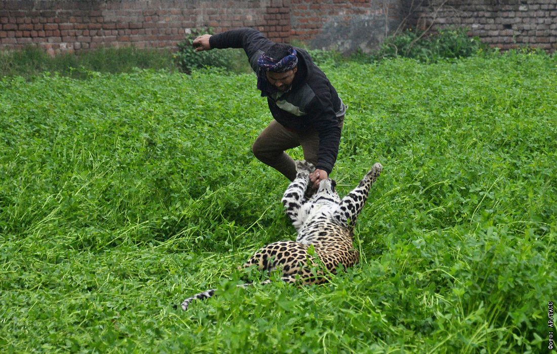 Леопард забрел в жилой район в индийском Джаландхаре и ранил по меньшей мере четырех человек, прежде чем его удалось обездвижить и поместить в клетку