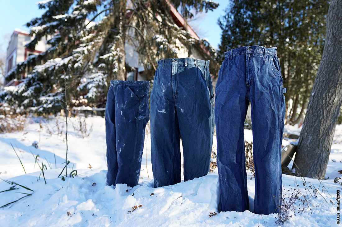 Замороженные джинсы во дворе дома жителя Миннеаполиса Тома Гроттинга. США.