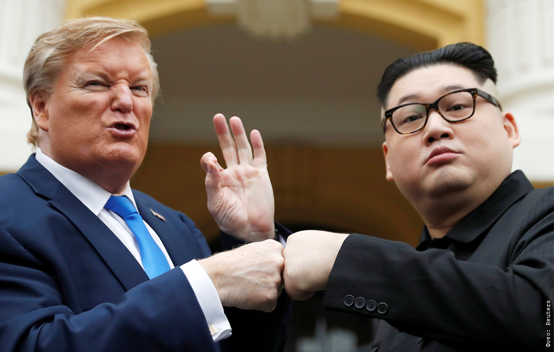 Актеры-двойники Дональда Трампа и Ким Чен Ына перед их предстоящей встречей в Ханое
