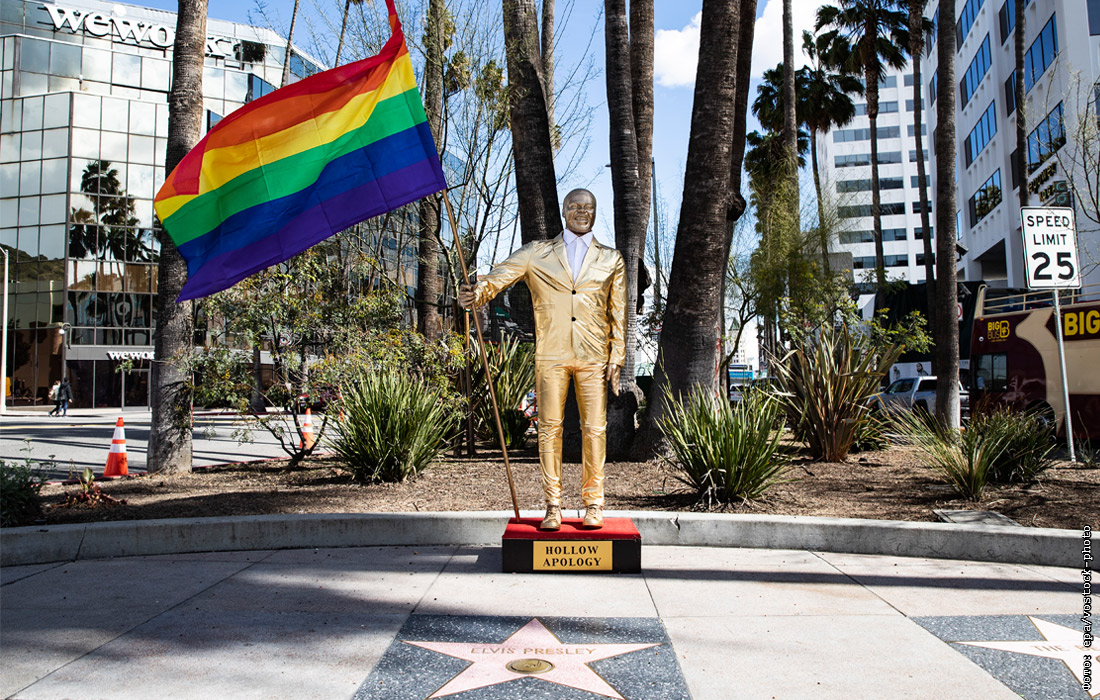 В преддверии вручения премии "Оскар-2019" в Лос-Анджелесе установили позолоченную статую комика Кевина Харта, который отказался стать ведущим церемонии из-за обвинений в гомофобии
