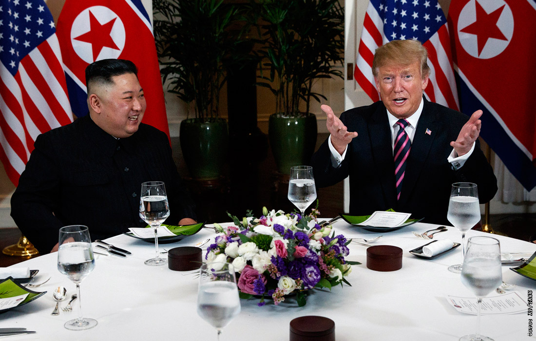 После личной встречи лидеры двух стран перешли к ужину. За столом присутствовали госсекретарь США Майк Помпео и шеф аппарата Белого дома Мик Малвейни. Трамп выразил надежду на то, что переговоры в итоге приведут к "чудесной ситуации". Он вновь охарактеризовал свои отношения с Ким Чен Ыном как "очень особенные".