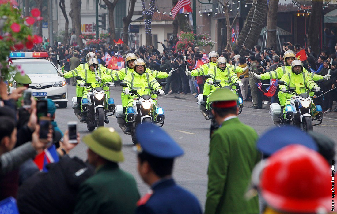 Многочисленные жители столицы Вьетнама выстраиваются вдоль пути следования кортежей, чтобы приветствовать мировых лидеров