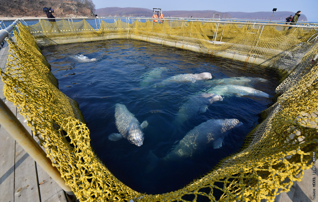 В 2018 году в Охотском море выловили 12 косаток и 90 белух для продажи в дельфинарии и океанариумы и поместили их в вольеры в бухте Средняя в районе города Находка в Приморье. Зоозащитники просят надзорные органы, следствие, федеральные и краевые власти привлечь экспертов для реабилитации и реинтродукции животных. Генпрокуратура и СКР выяснили, что животные выловлены с нарушениями закона, ФСБ завела административные дела на организаторов "китовой тюрьмы". Но косатки и белухи все еще остаются в неволе.