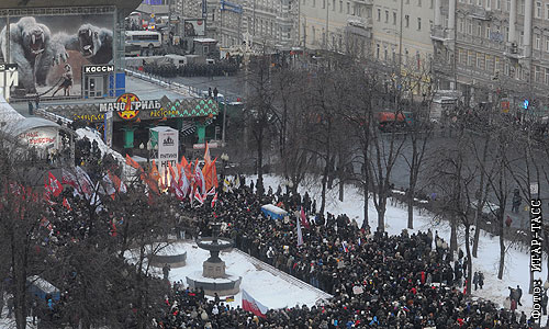 Участники акции оппозиции "За честные выборы" на Пушкинской площади.