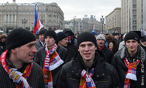 Митинг в поддержку Путина на Манежной площади.