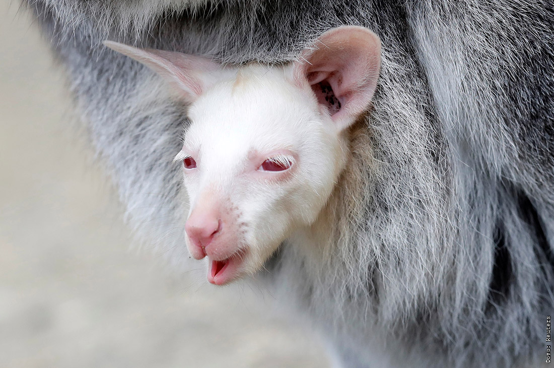 Новорожденный кенгуру-альбинос в зоопарке чешского Дечина