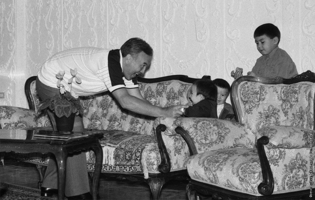 Нурсултан Назарбаев с внуками Айсултаном, Алтаем и Нурали (слева направо). 1992 год.
