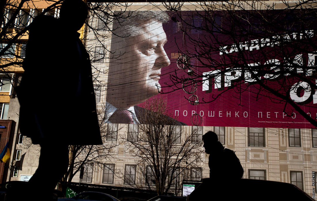 Баннер с изображением кандидата в президенты Украины Петра Порошенко в Киеве