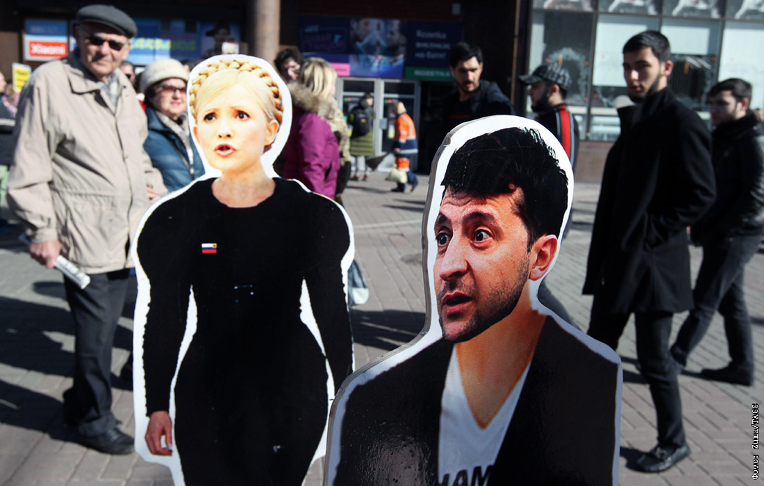 Ростовые фигуры Юлии Тимошенко и Владимира Зеленского, установленные группой активистов на одной из улиц Киева