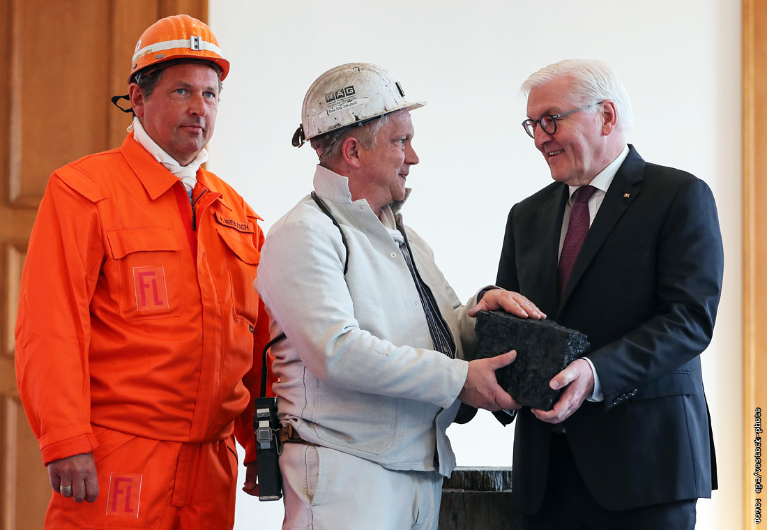 Президент Германии Франк-Вальтер Штайнмайер получил последний кусок угля, добытый на шахте компании RAG-Deutsche Steinkohle, который будет выставлен во дворце Бельвю. Последняя шахта для добычи каменного угля на территории страны закрылась в Рурском бассейне в декабре 2018 года, но страна продолжает использовать его в качестве источника энергии, импортируя из других стран, в том числе из России.