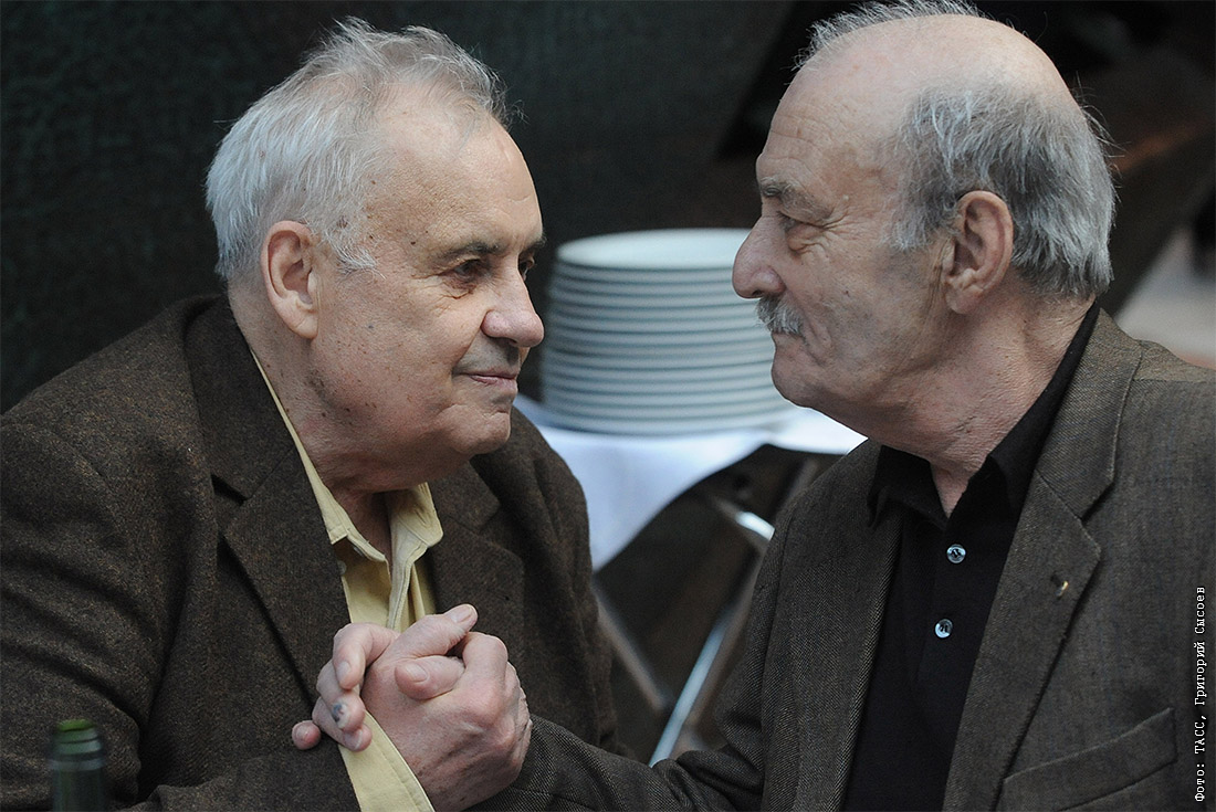 На фото: Эльдар Рязанов и Георгий Данелия (слева направо) на презентации новых работ Зураба Церетели «Мои современники». 2009 год.