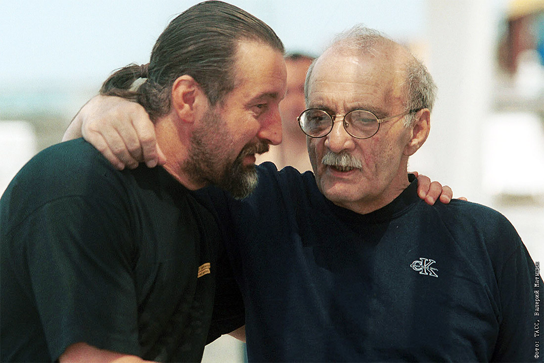 На фото: Леонид Ярмольник и Георгий Данелия в Сочи в дни "Кинотавра". 2001 год.