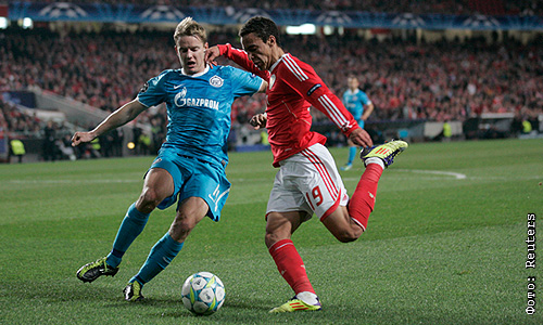 Петербургский футбольный клуб "Зенит" проиграл в гостях "Бенфике" в ответном матче 1/8 финала Лиги чемпионов и не смог выйти в четвертьфинал турнира. Встреча завершилась со счетом 2:0 (1:0). Первую игру в Санкт-Петербурге "Зенит" выиграл со счетом 3:2.