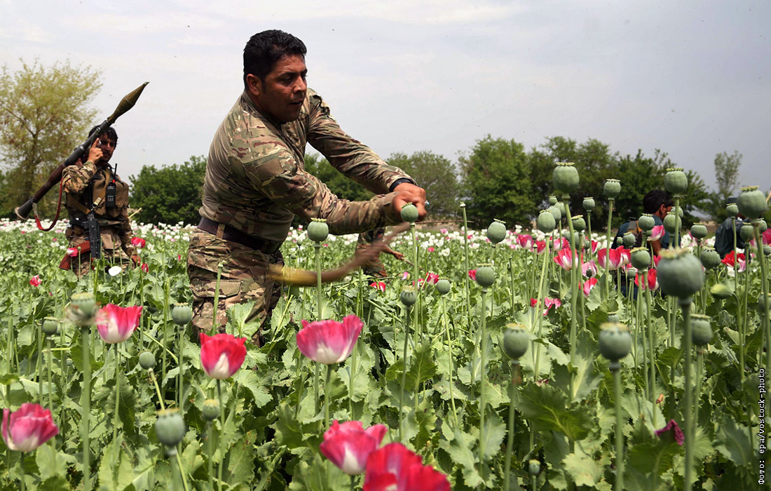 Военнослужащие уничтожают маковые поля в районе Ганихель в Афганистане. За последние два года объемы производства опиума в Афганистане увеличились на 87%.