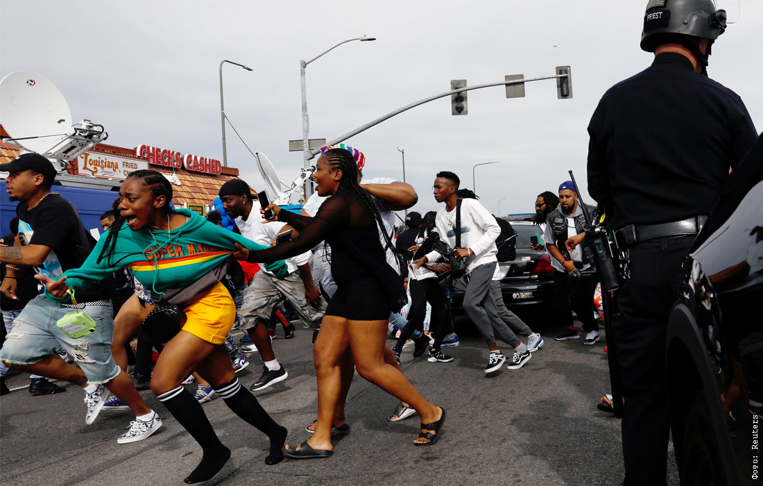 Фанаты во время похоронной процессии в память о рэпере Nipsey Hussle в Лос-Анджелесе. Американский рэп-исполнитель был убит 31 марта.