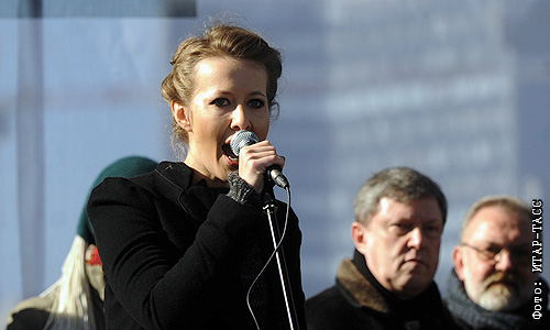Телеведущая Ксения Собчак во время выступления на митинге "За честные выборы" на улице Новый Арбат.