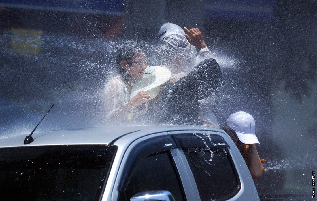 Во время празднования водного фестиваля в Янгоне, Мьянма