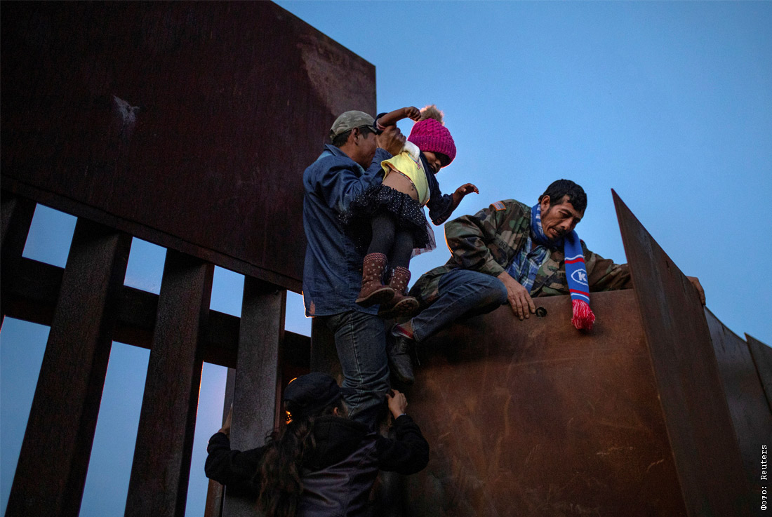 Мигранты перелезают через границу в районе города Тихуана, Мексика. 2 декабря 2018 года.