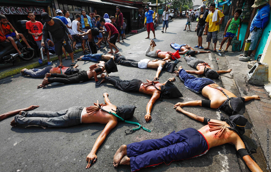 Филиппинские верующие практикуют массовое самобичевание и покаяние во время Страстной недели, считая, что так они замаливают грехи и приобщаются к страданиям и искуплению Христа