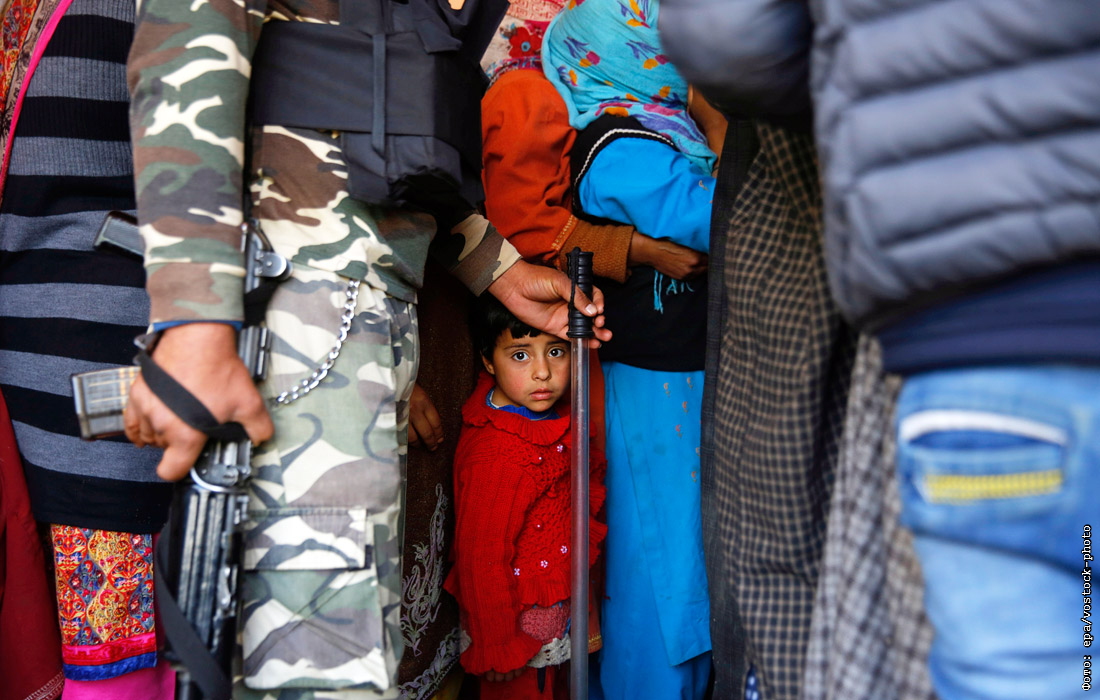 Второй этап парламентских выборов в Индии. Избиратели из Кашмира ждут очереди, чтобы отдать свой голос на избирательном участке. В выборах примут участие около 900 млн человек - число избирателей больше, чем население Европы и Австралии вместе взятых.