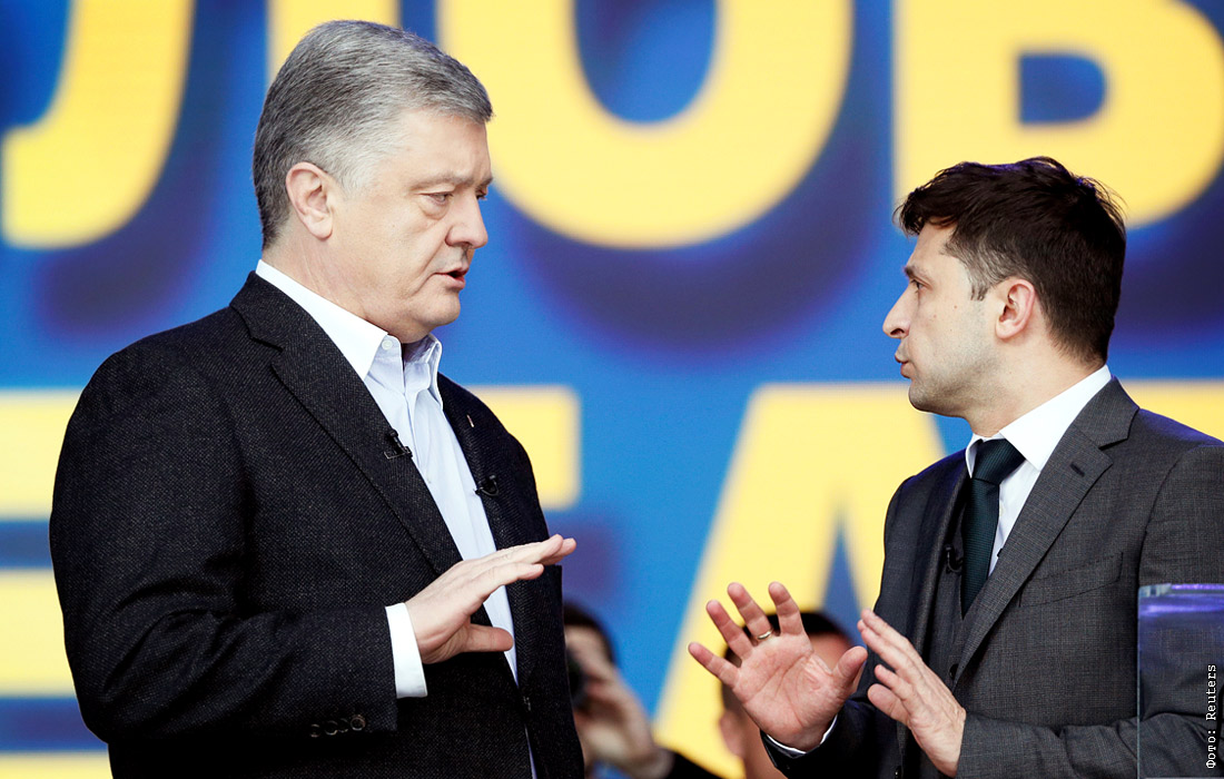 Кандидат в президенты Украины Петр Порошенко и его оппонент Владимир Зеленский