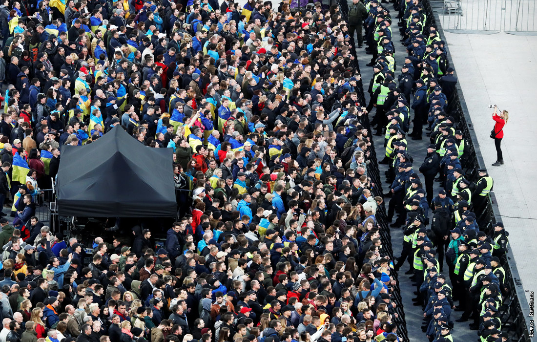 В Киеве на стадионе "Олимпийский" прошли предвыборные дебаты кандидатов в президенты Украины Петра Порошенко и Владимира Зеленского. По итогам первого тура, прошедшего 31 марта, Зеленский набрал больше 30%, а действующий глава государства - около 16% голосов избирателей.