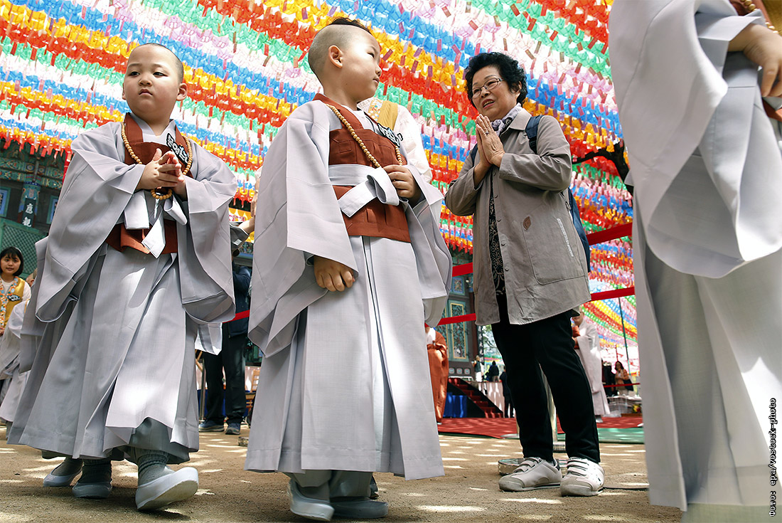 В Сеуле прошла традиционная церемония бритья маленьких мальчиков. Теперь они маленькие монахи.