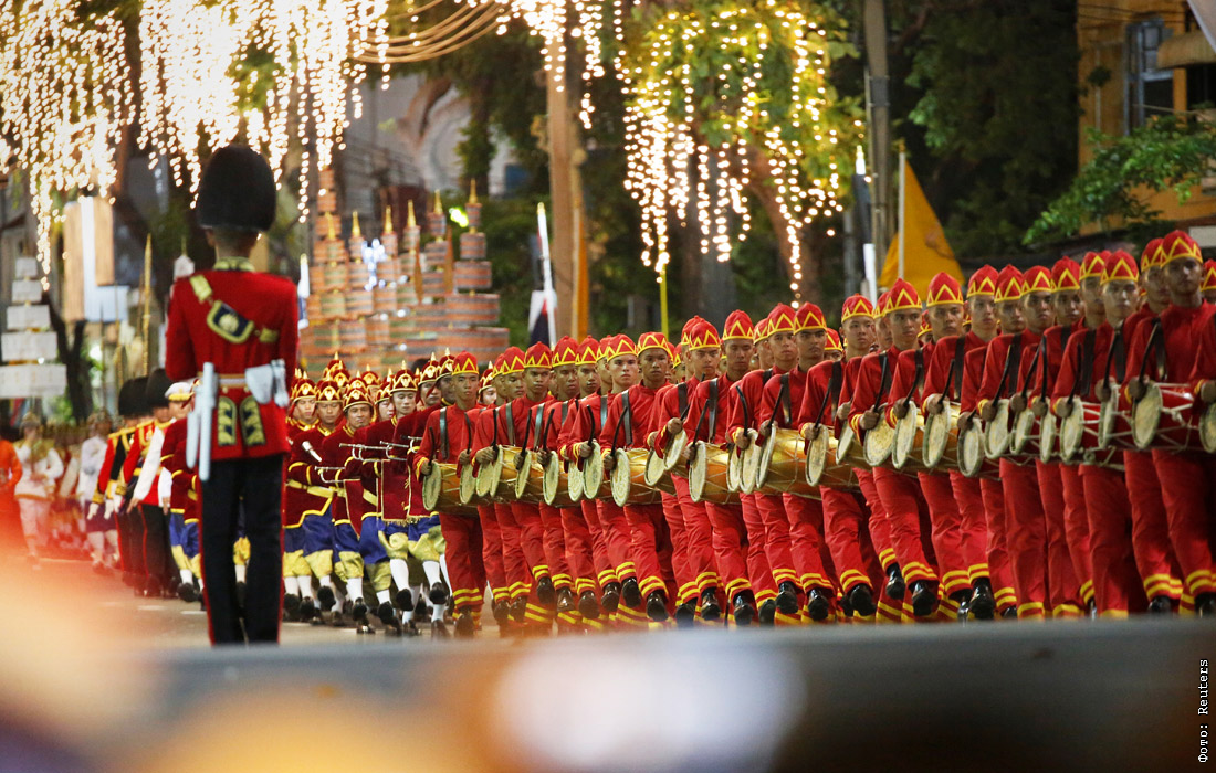 В воскресенье в Старом Бангкоке прошла королевская процессия с оркестром, а также состоялась провозглашение официального имени и демонстрация подписи короля
