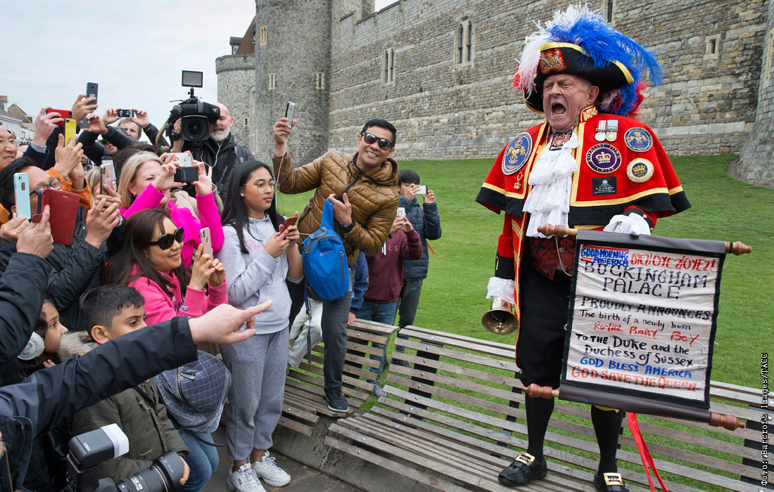 Неофициальный глашатай города объявляет о рождении ребенка в семье принца