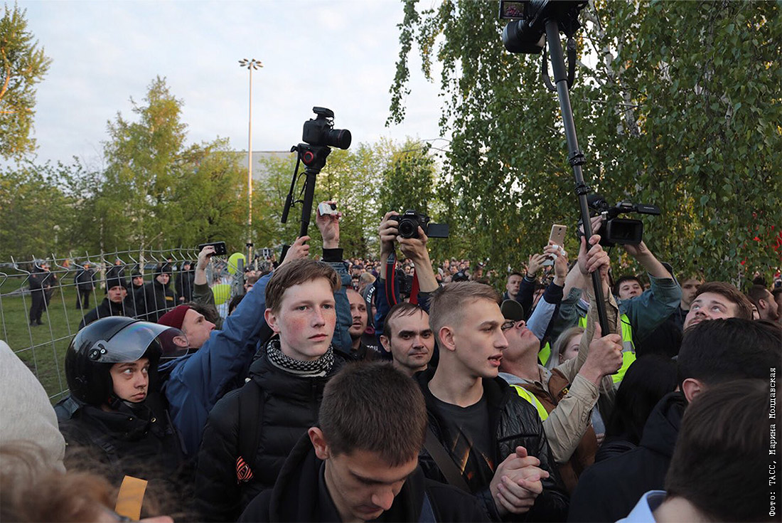 Жители Екатеринбурга продолжают выступать против строительства в центре города на месте сквера храма святой Екатерины. Вечером 14 мая акция протеста продолжилась и продолжалась до глубокой ночи.