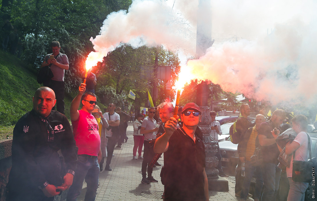 Активисты общественной организации "АвтоЕвроСила" в Киеве на акции владельцев автомобилей с еврономерами, требующих продления льготного периода для таможенного оформления своих машин