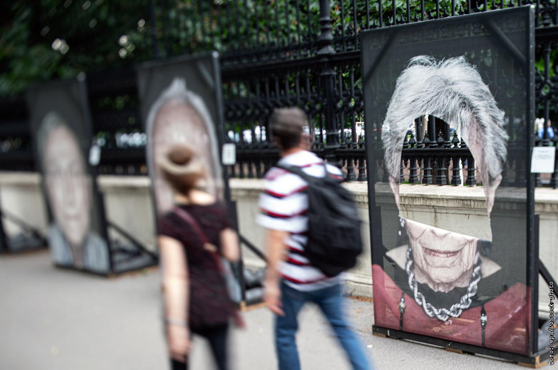 Поврежденные вандалами портреты выживших в Холокосте на улице Рингштрасе в Вене