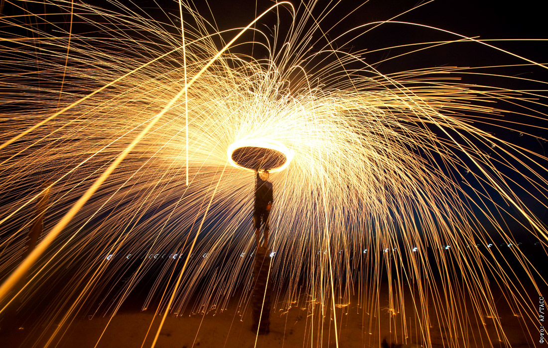 Световое представление в преддверии окончания Рамадана на пляже города Газа