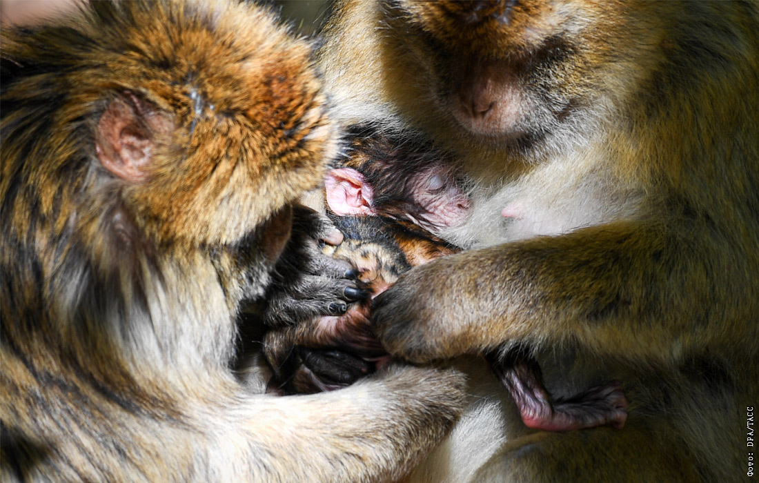 Детеныша берберской обезьяны показали в парке Affenberg в Германии