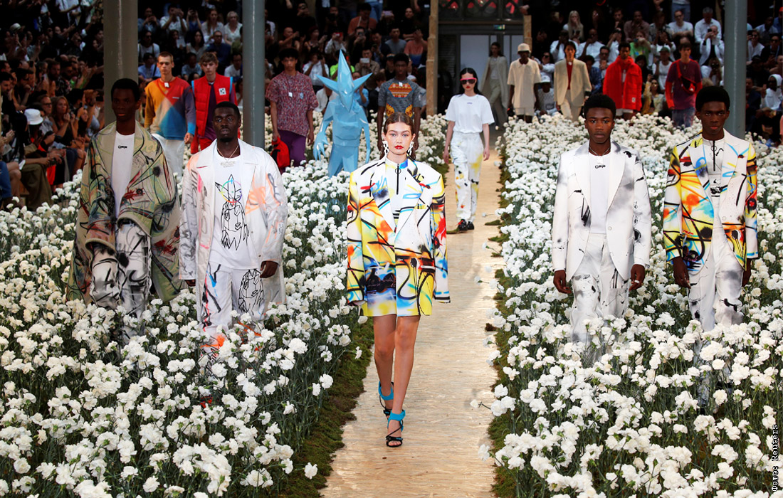 Модель Джиджи Хадид закрыла показ коллекции мужской моды от бренда Off-White, который прошел в рамках Недели моды в Париже