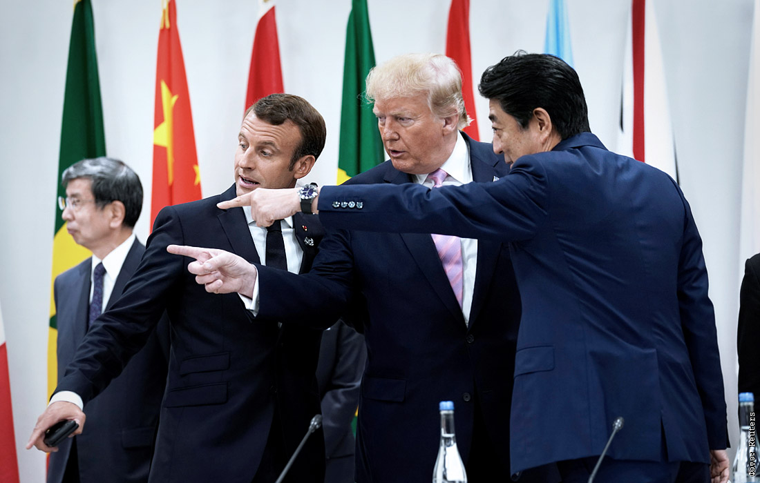 Президент Франции Эммануэль Макрон, президент США Дональд Трамп и премьер-министр Японии Синдзо Абэ