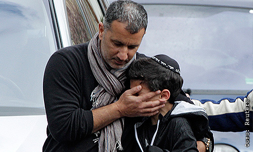 Мужчина, передвигавшийся на мотороллере черного или белого цвета (показания свидетелей разнятся), подъехал к учебному заведению "Озар ха-Тора" около восьми утра по местному времени (11:00 по московскому) - как раз в то время, когда перед началом занятий у входа в школу собираются ученики и их родители. По словам очевидцев, преступник немедленно открыл огонь. Смертельные ранения получили 30-летний мужчина, двое его сыновей - трех и шести лет - а также один десятилетний мальчик. Серьезные травмы также получил 17-летний юноша.