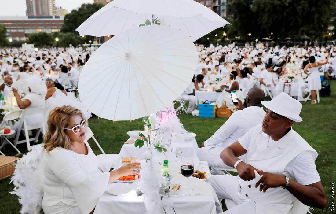 В Нью-Йорке в парке имени Рокфеллера более 5 тысяч гостей собрались, чтобы принять участие в ежегодном "Ужине в белом". Традиция зародилась во Франции 30 лет назад, и помимо США мероприятие поддерживают в Канаде, Австралии, Франции и других странах. Точное место проведения званого ужина держится в секрете до последнего момента.