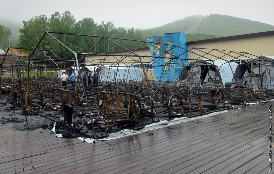 В ночь на вторник в детском палаточном лагере на территории горнолыжного комплекса "Холдоми" произошел пожар. К прибытию первых подразделений 20 из 26 палаток уже сгорели. В результате пожара один ребенок погиб, трое пострадавших детей впали в кому. Всего в палаточном городке находились 189 детей в возрасте от 7 до 15 лет.