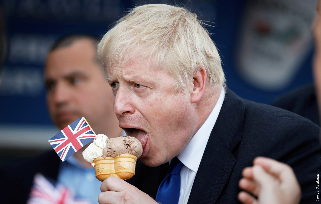 Борис Джонсон наслаждается мороженым на острове Барри, Великобритания. Июнь 2019 года.