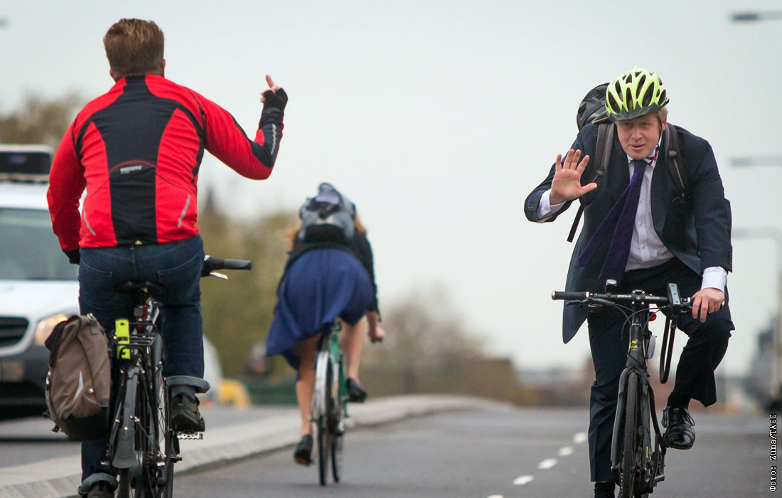 Борис Джонсон приветствует жителей Лондона на мосту Воксхолл. Ноябрь 2015 года.