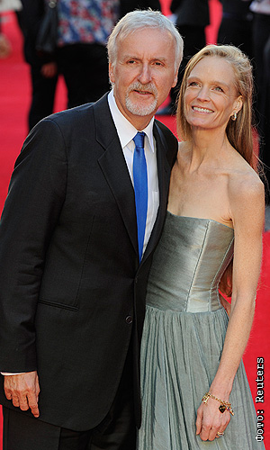 Режиссер Джеймс Кэмерон с супругой Сюзи Эмис на премьере фильма "Титаник 3D" в Лондоне.