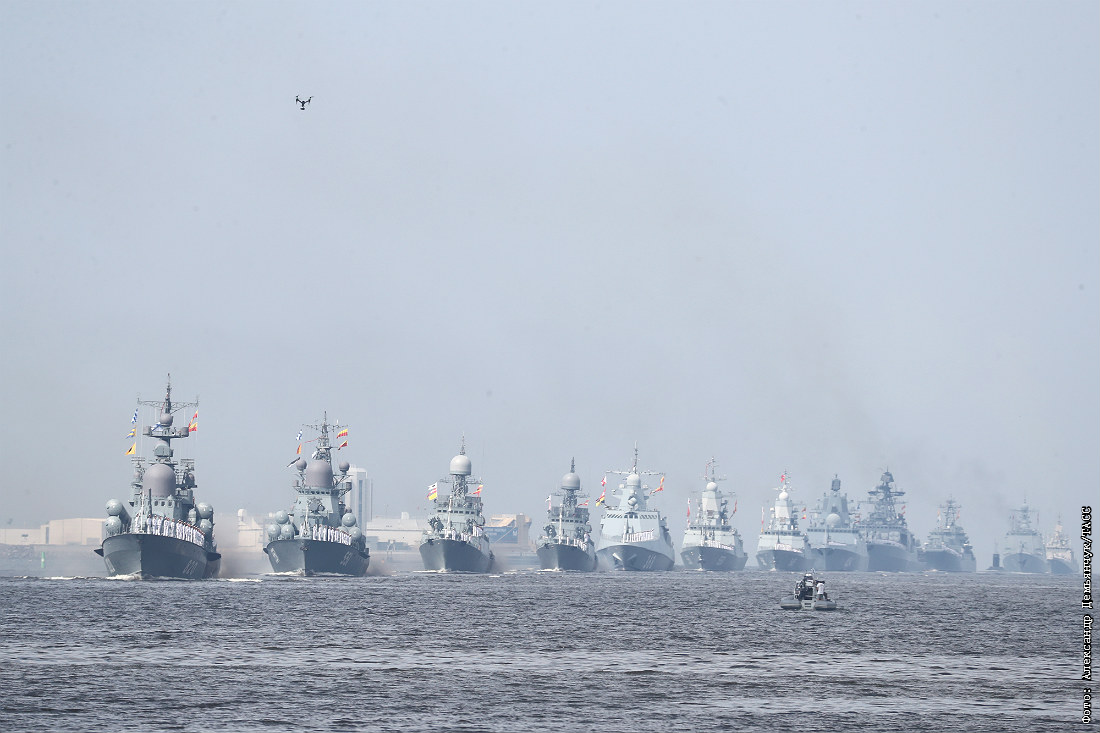 День военно-морского флота традиционно отмечается в России в последнее воскресенье июля. Главный парад состоялся в акватории реки Невы, его принял верховный главнокомандующий Владимир Путин. Также парадами праздник отметили в городах, где базируются российские флоты: во Владивостоке, в Севастополе, в Североморске и в Балтийске, а также в Астрахани, где базируется Каспийская флотилия. Кроме того, российские боевые корабли и авиация приняли участие в военно-морском параде, который состоялся на рейде сирийского порта Тартус.