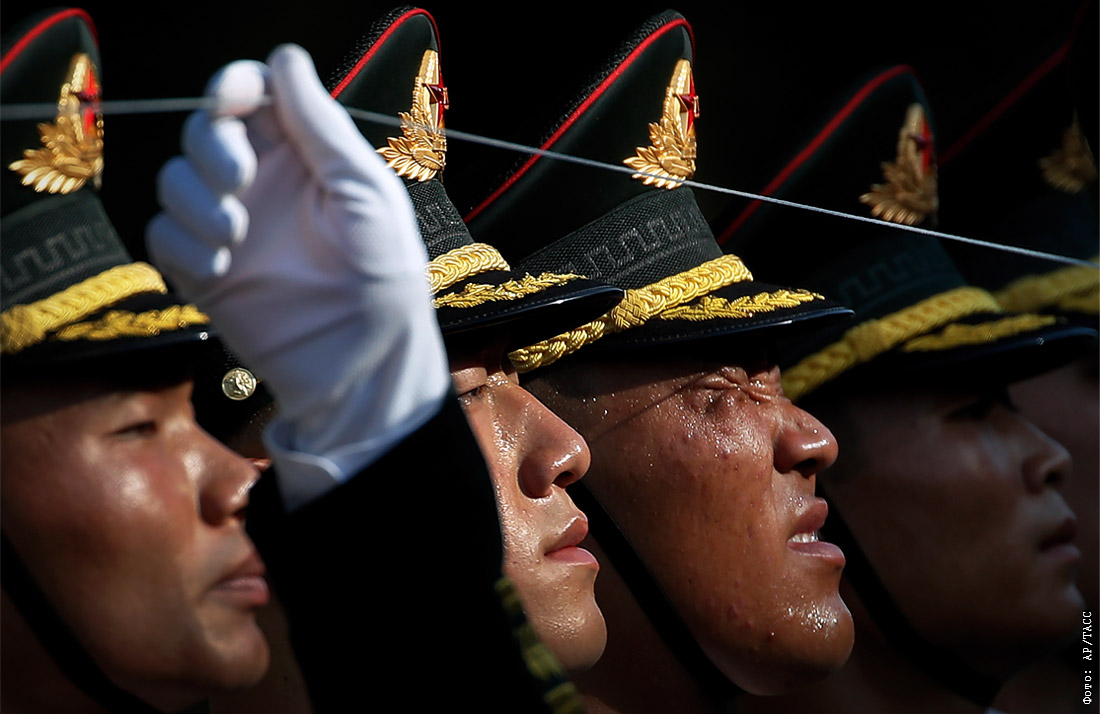 Почетный караул готовится к церемонии приветствия президента Колумбии в Большом народном зале в Пекине