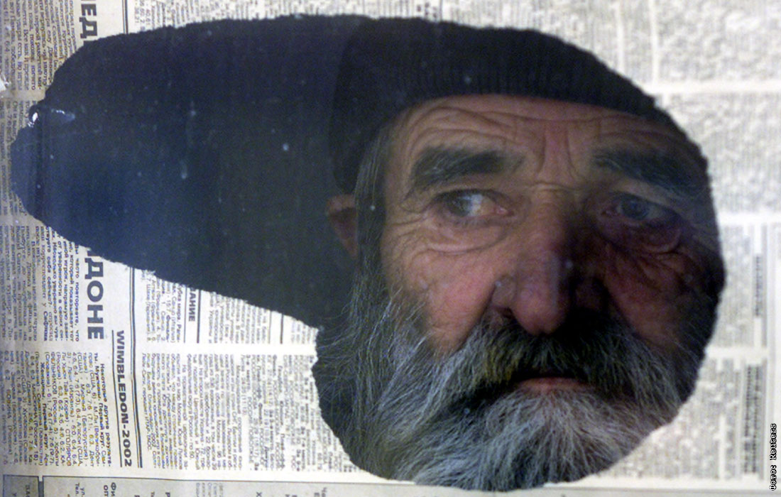 Пожилой мужчина смотрит из окна центра для беженцев в Грозном. 11 декабря 2002 год.