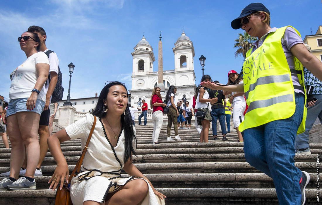 Власти Рима запретили туристам сидеть на Испанской лестнице. Туристическая полиция патрулирует центр города и следит за дисциплиной иностранных гостей. Нарушителей ждет штраф в 250 евро, который в случае неповиновения сотрудникам полиции может вырасти до 400 евро.