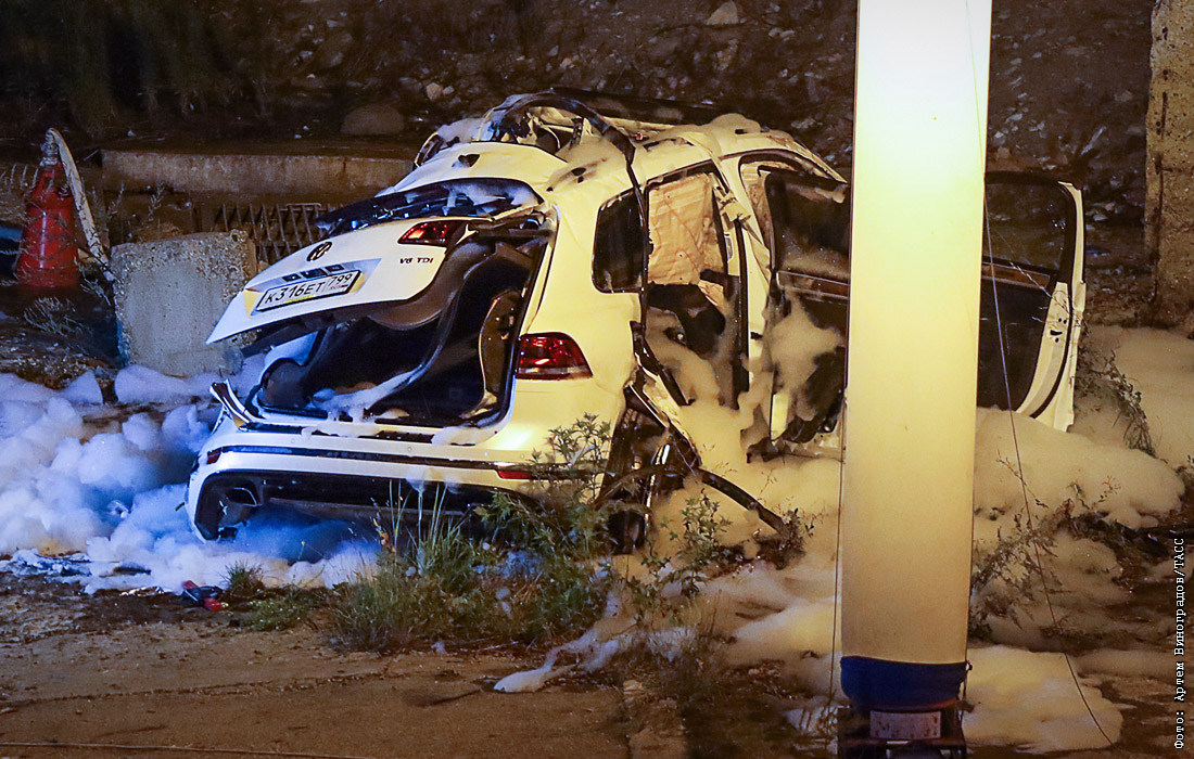 Туристический автобус Hyundai и внедорожник Volkswagen Touareg столкнулись на 16-м километре трассы "Новороссийск - Керчь", после чего упали с десятиметрового обрыва. Жертвами ДТП стали три человека - женщина и двое детей, которые находились в автомобиле. В автобусе находился 41 человек.