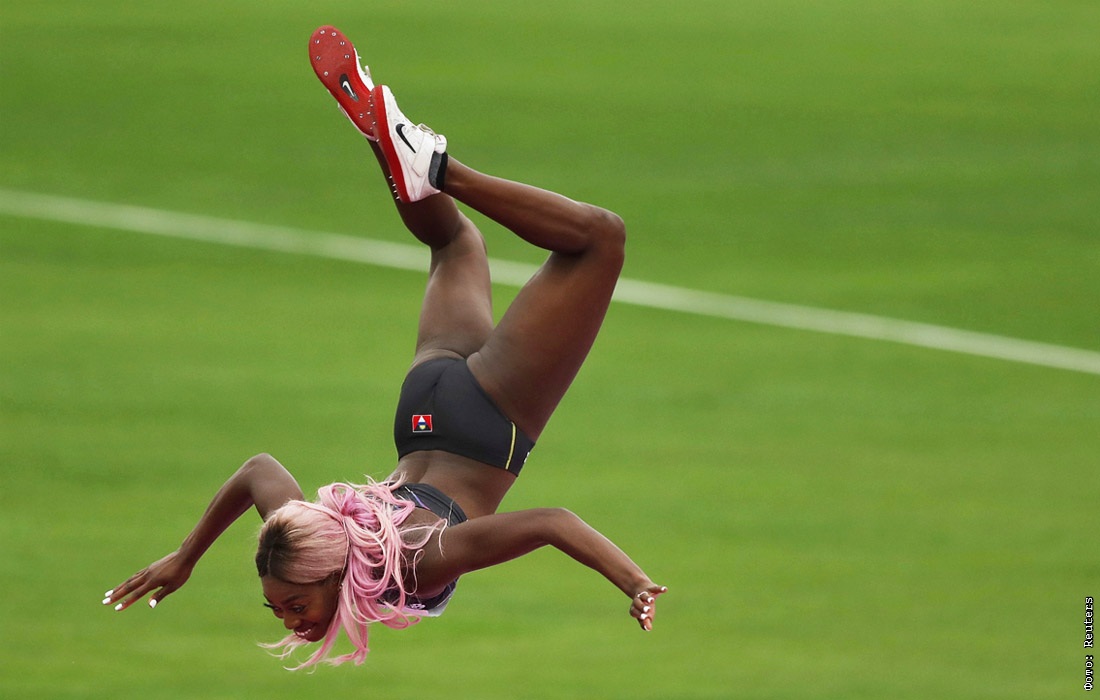 Спортсменка Присцилла Фредерик во время соревнования по прыжкам в высоту в рамках Панамериканских игр в Лиме, Перу