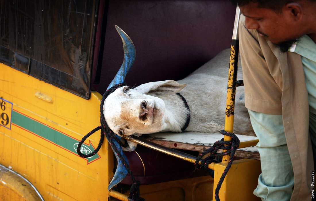 На рынке скота в канун мусульманского праздника жертвоприношения Курбан-байрам на окраине Ченнаи, Индия