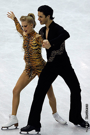 Спортсмены из Канады во время исполнения короткой танцевальной программы на чемпионате мира по фигурному катанию в Ницце.